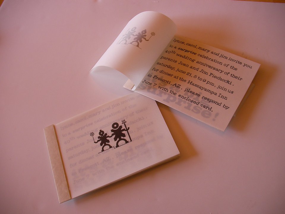 On occasion I'm asked to create custom invitations. I use either Adobe Illustrator or Photoshop as well as my Chandler & Price Letterpress.